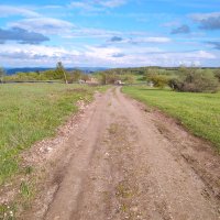 polní cesta, za velký dešťů, louže - ne hluboké, lehce průjezdné