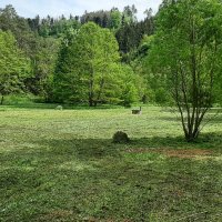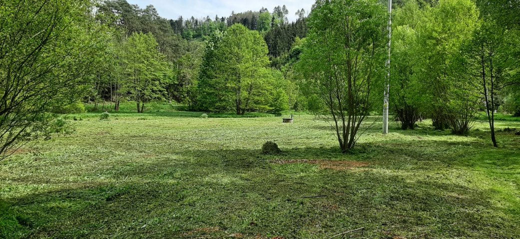 Cesta na pozemku je dostatečně široká pro jakýkoliv, i nákladní, automobil.
