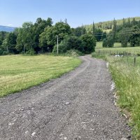 Příjezdová cesta je zpevněná, stejně jako parkoviště a příjezd dobrý i za deštivého počasí.