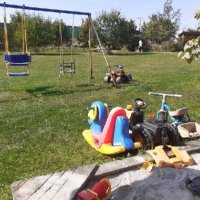 100 m dětské hřiště, 3 km skatepark, na pozemku houpačky a hrací prvky