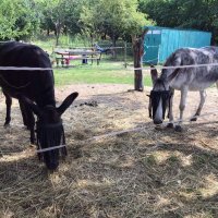 Zahrada je základnou pro koníky a ovečky. Máme je také jako sekačky, zahradu průběžně udržují a sekají :-) my jen doladíme sekačkou a křovinořezem. V letních jsou na zahradě dva oslíci, kteří sem již pravidelně jezdí na prázdniny. Koníci v létě pasou pastviny v Týně a jsou většinou mimo zahradu, ale je možné se domluvit na svezení. O velkých prázdninách je na zahradě k dispozici stan, letní kuchyně s vařičem …