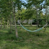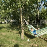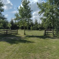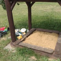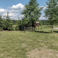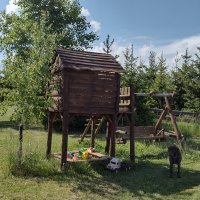 přímo na pozemku k dispozici trampolína a pro menší malý dřevěný domeček s pískovištěm a houpačkou. Na zahradě slepice a kuřátka, koně v blízkosti. Kousek od pozemku rozlehlá louka s posezením na lavičce a dalším velkým pískovištěm a tabulí na malování s křídami