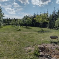 - zavedli jsme hadici až k pozemku, tedy možnost načepování vody kdykoliv, ale pozor, hadice není v zemi, jen krytá cca 5cm vrstvou kůry a pod stromy, tedy na pití doporučujeme stejně spíše vodu balenou. Nyní přes zimu máme vodu vypnutou, aby hadice nezamrzla. Není ale vůbec problém zavolat, bydlíme hned kousek, takže si pro vodu můžete do vlastní nádoby k nám dojít dočepovat.