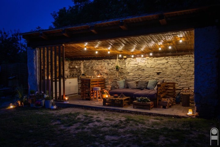 - Zásuvky na 230 V jsou rozmístěny pod přístřeškem