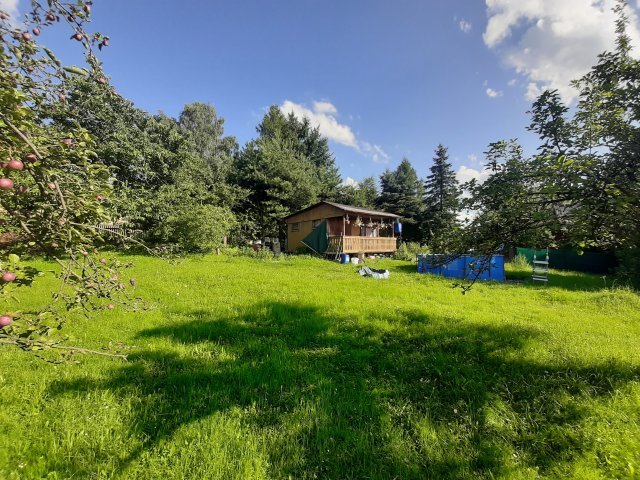 Letní chatka az pro 4 osoby se samostatnou oplocenou zahradou o výměře cca 1000m2, s dostatečným soukromím je umístěna v okrajové čtvrti nad Děčínem, dostupná MHD - zastávka 50 m.