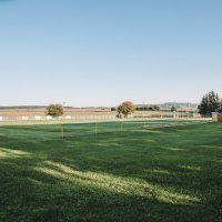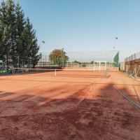Víceúčelové sportovní hřiště (tenis,nohejbal,fotbal), antukový tenisový kurt, travnaté fotbalové hřiště v areálu