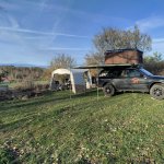 přímo pod pozemkem se nachází maringotka kde bydlí nejspíš majitel pozemku. Když jsme to viděli tak jsme si řekli hmm to na fotkách pozemku vidět nebylo ale jakžtakž to ještě zkousneme. Ta správná perla ale přišla až ve večerních hodinách. Pán má totiž za maringotkou agregát na generování elektřiny pro spotřebiče a večerní svícení. Takže kromě pár metrů vzdálené silnice jsme místo klidného venkovského ticha poslouchali i hučící agregát (do cca 22hod). Objektivně musím pochválit připravenost pozemku, pěkné ohniště, dříví, sekera (tupá, ale posloužila), rošt na ohniště, prkýnko a nějaké příbory. Vše ale bylo zastíněno výše zmíněnými nepříjemnostmi.