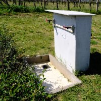 Šedá voda (sprcha, umývání) - Za přípojkovou skříní se nachází výlevka šedé vody, která je napojena na městskou kanalizaci ukončenou ČOV. U výlevky je zdroj vody s hadicí.