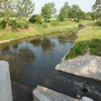 100 metrů od pozemku splav a rybí přechod
