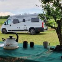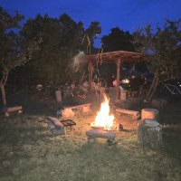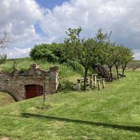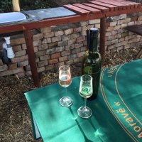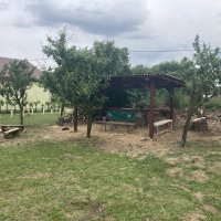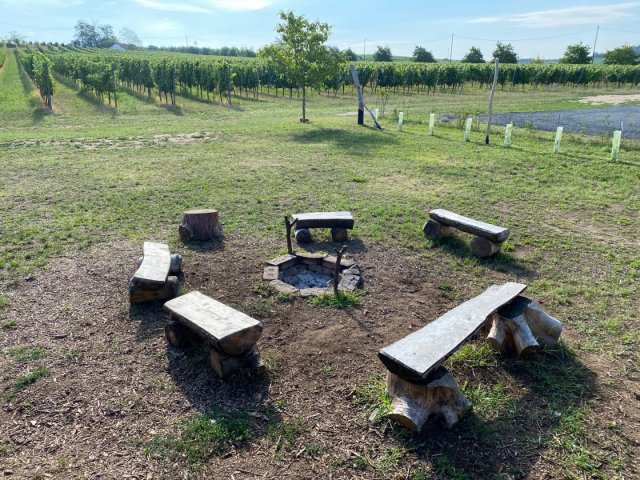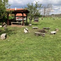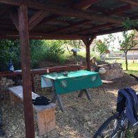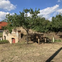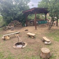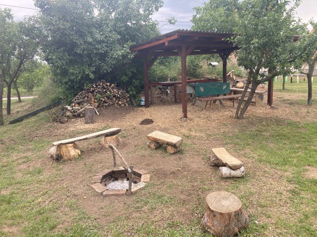 - Přímo na pozemku je pergola s dřezem a dvěma kohouty na pitnou vodu