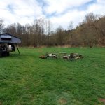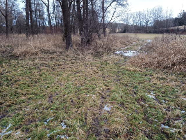 Travnatá cesta, rovinatá. Při velkém mokru místy klouže. Výjezd na silnici bezproblémový, zpevněný.