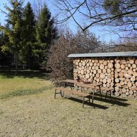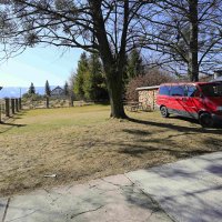 - Kohoutek s pitnou vodou u rodinného domu - vzdálenost cca 30 metrů, za domem je k dispozici kout s dřezem s tekoucí studenou pitnou vodou a varnou konvicí. Je zde i zásuvka 220 V - možnost dobíjení elektroniky.