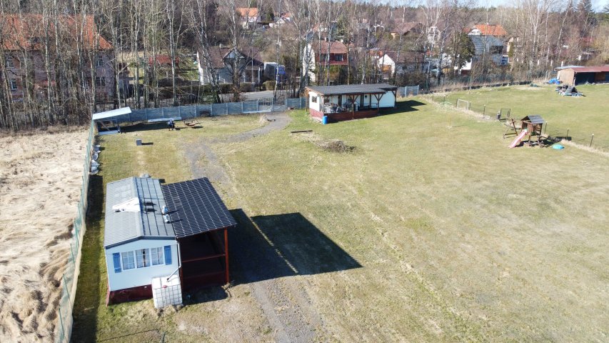 Na pozemku trampolína, domeček, kuchyňka, houpačka, pískoviště.