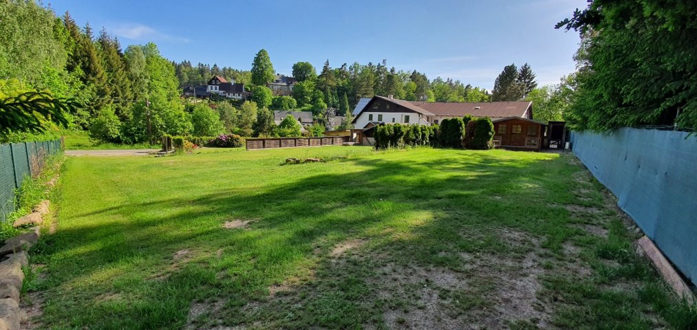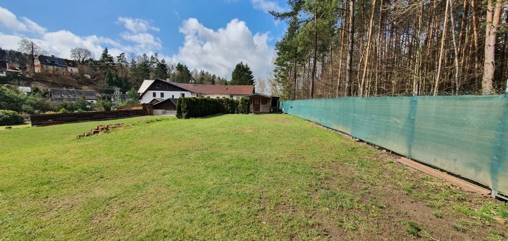 Nájezd na pozemek je travnatý a na 2/3 pozemku je mírně ve svahu, což za deště může někomu činit problém.