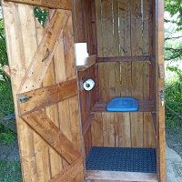 - Na pozemku je umístěné suché WC s vestavěnou ekologickou separační toaletou bez zápachu.