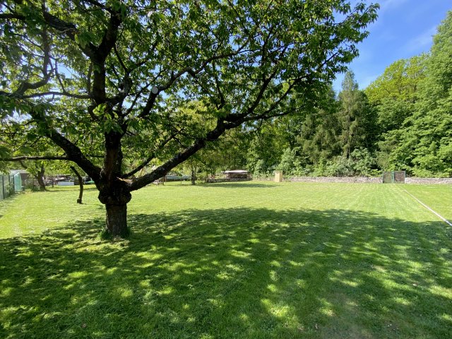 - Prosím, nevstupujte na sousední pozemek (napravo od branky do lesa při pohledu směrem na les). Není oddělen plotem a prostor se tak zdá jako jedna velká zahrada, k vaší rekreaci je určena pouze levá část při pohledu k lesu.