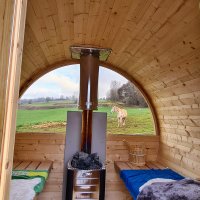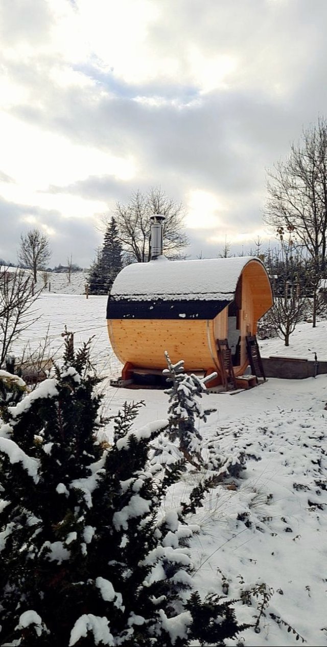Pro naše hosty je k dispozici venkovní finská sauna s koupacím jezírkem