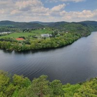 Kousek pevniny u rybníka, odkud můžete vyrážet na pěší či cyklovýlety do krásné krajiny okolo. 2km odsud najdete například Chráněnou krajinnou oblast Drbákov - Albertovy skály, odkud se můžete ze skal kochat nádhernými výhledy na Vltavskou kaskádu.