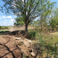 K dispozici ohniště i dřevo (využijte buď nařezané pod plachtou nebo ležící na hromadě pokácené - zatím nenakrácené). WC zde zatím není, ale plánujeme umístit latrýnu s bio či chemickým záchodem uvnitř a výhledem do přírody (až bude, zaktualizujeme nabídku). Užitkovou vodu plánujeme jímat ze střechy latrýny a domu na nářadí/vybavení, případně z rybníka (není součátí našeho majetku).