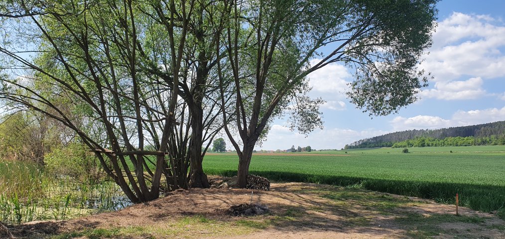 Krásný rovný plácek s ohništěm a dřevem. Rybník na koupání není, ale pes tam stejně vlezl😁úžasná samota v okolí. Probudí vás zvuky koní, krav a kohoutů 😊