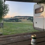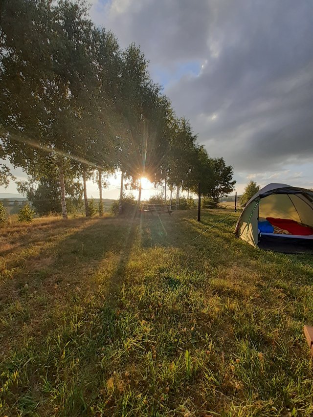 - Pitná voda je vzdialená od miesta cca 200 metrov, zdrojom vody je záhradné umývadlo a záhradná hadica. Po dohode s domácimi je možnosť odviesť vodu terénnym autom.