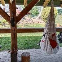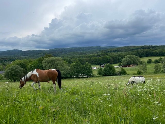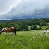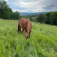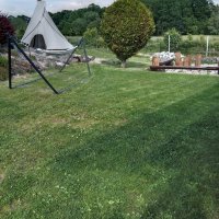 Pozemek je oplocený, v jedné části zázemí a zahrada pro klienty, kteří občas přijdou za koňmi,v druhé části dům a zahrada domácích, rozděleno jen opticky,nutno dodržovat soukromí,v případě mazlíčka, hlídat u sebe. Vše záleží na domluvě.