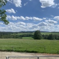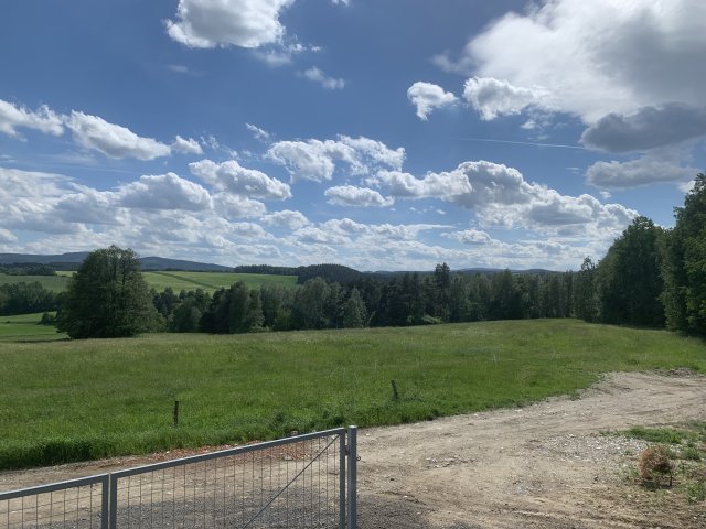 Z pozemku je krásný výhled na okolní krajinu a pasoucí se stádo kraviček, zejména pak na Novohradské hory.