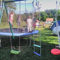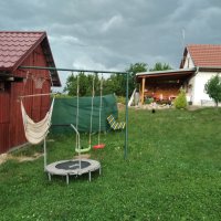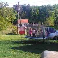 Na zahradě je možno využití trampolíny , houpačky a dětského domečku.