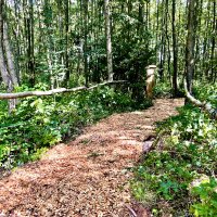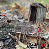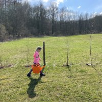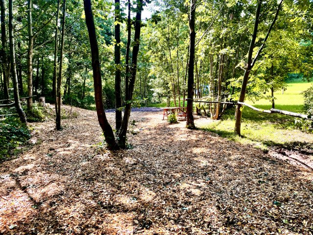 Asi 1km od pozemku jsou v lese vybudované obcí přírodní atrakce pro děti