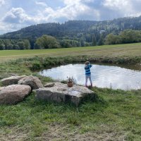 - Pozemkem protéká potok a máme zde vlastní tůňku, 50m od pozemku je rybník jinak je to u nás na divoko bez domácího komfortu, za to je tu neskutečný klid