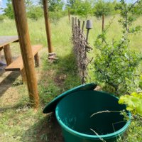 Oheň prosím rozdělávat pouze v ocelovém ohništi umístěném na pozemku a po použití zalít vodou (k dispozici je užitková voda v sudu).