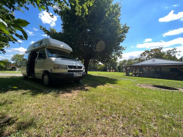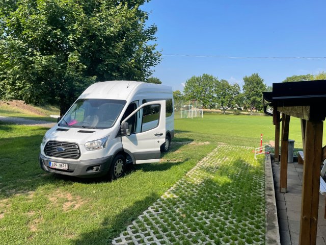 Skvělé místo hned za zdí Kostnice v areálu fotbalového hřiště. Katedrála 3 minuty pěšky, muzeum Lega ještě méně, krásná rozhledna na Kaňku 15 minut. Luxusní splachovací toaleta v areálu šaten místního SK. Plejeří měli zrovna večerní úterní trénink, tak i ukázka místního fotbalu zdarma. V noci krásný klid. Moc děkuji za nocleh.
