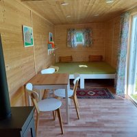 Při topení v kamnech buďte velmi opatrní, ať nedojde k požáru. U postele vedle dveří je na stěně detektor - alarm na přítomnost CO (oxidu uhelnatého).
