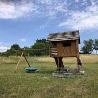 Přijeli jsme za deště a stáli u rozestavěného domu, dalo se stát i na trávě, ale vzhledem k počasí jsme nechtěli. Příjezd v pohodě, štěrková cesta, nicméně dlouhé soupravy by mohli mít problém s manipulací. Spali jsme jednu noc, jsme soběstační takže jsme nevyužili žádných služeb, majitelem nám byla nabídnuta elektřina, majitel příjemný, ochotný. Syn si pohrál na malém hřišti. Velice klidné místo, ale okolí nepůsobí moc vábně pro oči - vraky aut, haly, staveniště, nic méně nám nevadilo, byli jsme pouze jednu noc, společnost nám dělala kočka 😊 Za plotem velice krásná příroda, v okolí možnost několika výletů