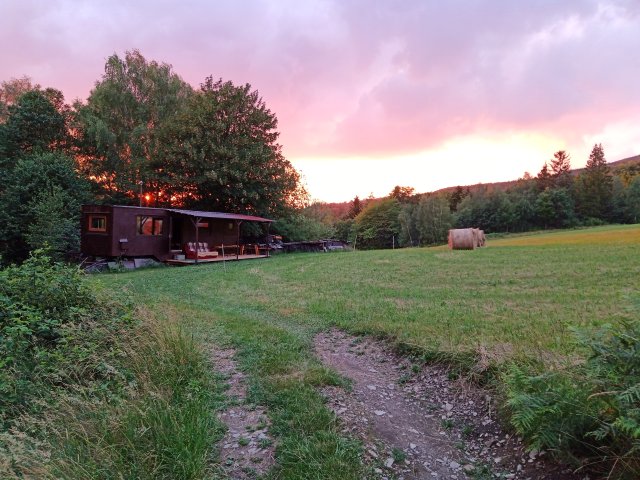 Krásné místo na konci světa, po cestě dál už jen dvě chalupy, les a v něm polská hranice. Maringotka skvěle připravena, i přes nepřízeň počasí se dala snadno vytopit a užít si výhled z okna. Pro 1-2 lidi naprosto dostačující, pro další osoby mi už jedna z rozkládacích pohovek připadala spíš na nouzové přespání. Za mě velká spokojenost s ubytováním i lokalitou, mému chlupáčovi se tam líbilo také :-).