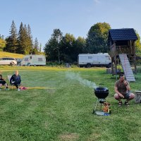 Moc příjemné místo :). Doporučujeme! Občas po cestě projelo auto a všichni koukali, kteří blázni zde nocují v takovém sněhu. Oceňujeme možnost záchodu a sprchy. Skvělý je také samooblusžný bar. Umím si zde představit příjemně strávené léto. Děkujeme!