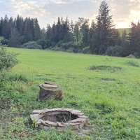 Pozemek je pro stany, nad chalupou Palčovka. Na štěrkovou cestu lze zaparkovat 1 obytné auto (bez připojení k elektrice). WC a sprcha ve sklepě Palčovky. Taky máte k dispozici Palčovka BAR (víno, pivo, nealko) + káva ve stodole. K pujčení lehátka. Na pozemku neni elektřina, telefony lze nabít ve stodole.