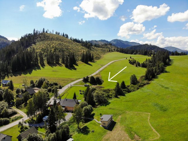 Na konci obce Huty, s výhledem na Sivý vrch. U vstupu do Kvačianské doliny.