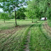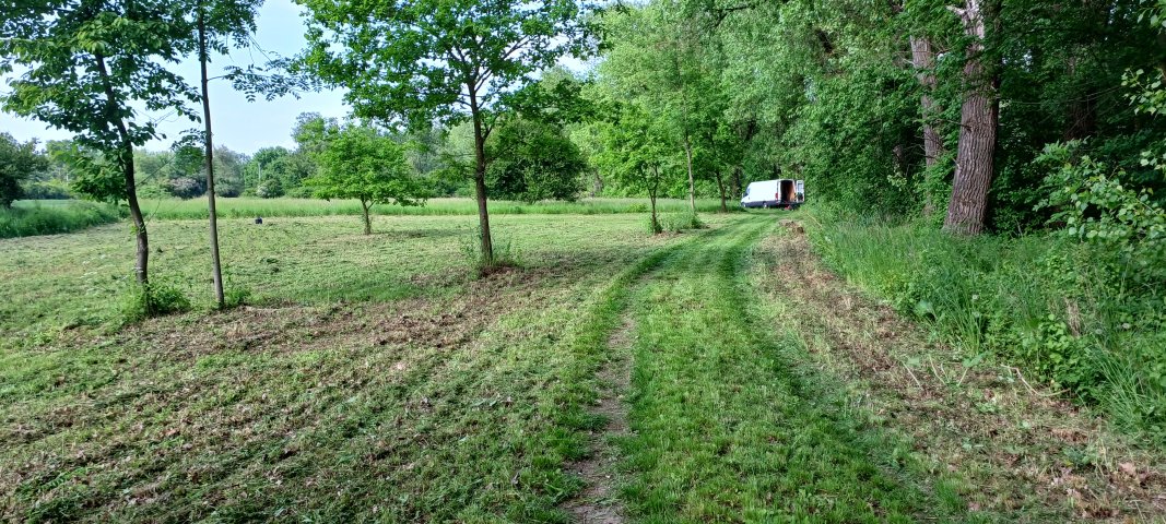 Příjezd je po štěrkové ( polní)cestě až na místo bez problémů. Stání na trávě.