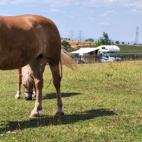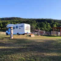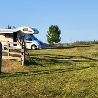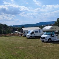 Pozemek jsme sami navštívili při jeho zakládání a otevření. Místa je více než dost pro 4 posádky. Rozdělené do dvou částí (ve spodní je potřeba místy klínovat). Bonusem je určitě možnost sprchy a wc (vnitřní i venkovní sprcha) + výlevky. I když je místo na farmě, tak je rozhodně klidné - provoz farmy se odehrává stranou. Od karavanu je výhled přes výběhy zvířat jen do zelených strání. Určitě stojí za to si vyšlápnout nahoru na kopec - užasný rozhled do kraje. Velmi příjemné, klidné místo.