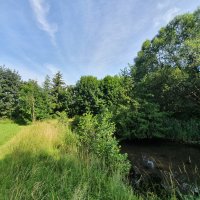 A v blízkosti pozemku je povrchový tekoucí pramen s užitkovou vodou.