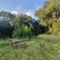 Travnatá příjezdová cesta okrajem sadu na vysekanou část louky pro místo kempování. Vstupní bránu do sadu, je třeba důsledně zavírat, kvůli slepičkám. Za branou se dejte vlevo po chvíli se cesta stočí vpravo a teď již rovně až na volnou plochu louky kde je místo pro kempováni.