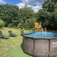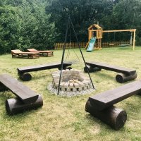 Dvě dětská hřiště, k zapůjčení kopací balón na fotbal, koule na petanque k našim dvěma petanqueovým hřištím.
