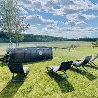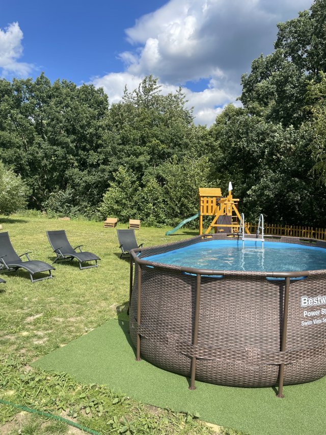 Neomezeně ve venkovním bazénu 4,5 x 2,5 m a po domluvě zajistíme vstup do vnitřního bazénu 12 x 6 m s vířivkou.
