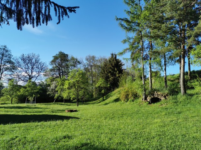 Neoplocená, udržovaná část louky se sadem, v blízkosti dům se zahrádkou majitelů, k dispozici ohniště, po dohodě dřevo, připojení na vodu a elektřinu. Chemické WC pod střechou, ovšem s výhledem do zeleně a na hvězdy. Možnost vysprchovat se ve sprchovém boxu umístěném v zemědělské části domu (drobný příplatek za ohřev vody). Zvířata povolena s vědomím, že v sousedství jsou kočky a pes majitelů.