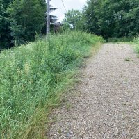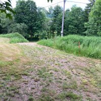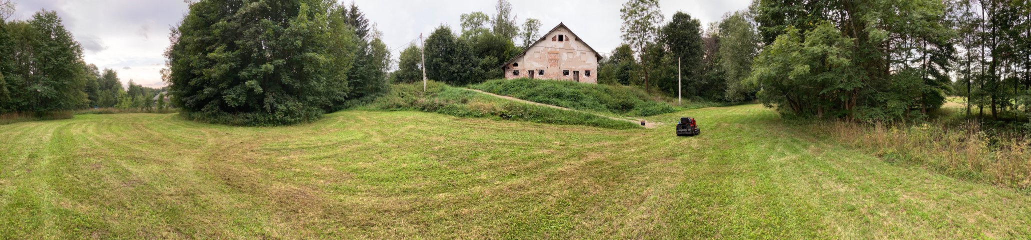 V případě silného deště může být pozemek krátkodobě rozměklý. Po příjezdové cestě pokračujte od silnice dolů na louku. Nevjíždějte mimo vykolíkovanou cestu.