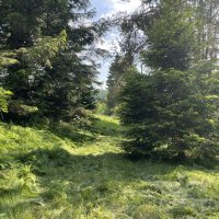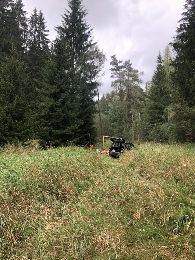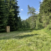 Asi kilometr za Pohorskou vsí (směr na Leopoldov) odbočíte doprava k lávce a brance, kde je nápis soukromý pozemek (pozemek sousedů), zde se dá nechat auto v případě, že nemáte terénní a na pozemek by nebylo tím pádem vhodné jet, pokud máte terénní auto, nebo menší dodávku s pohonem 4x4 dá se vjet až do cípu pozemku, kde stojí kadibouda, jak je na fotkách, jezdím tam od této odbočky dolů, kde jsou velké smrky, bříza a borovice. Poté rovnoběžně se silnicí až k vzrostlým smrkům, kde můžete auto nechat, nebo pokračovat z kopce do vysekané trávy pod smrky a dále směrem k suchému zachodu ( to už záleží na vás kde chcete s autem stát)