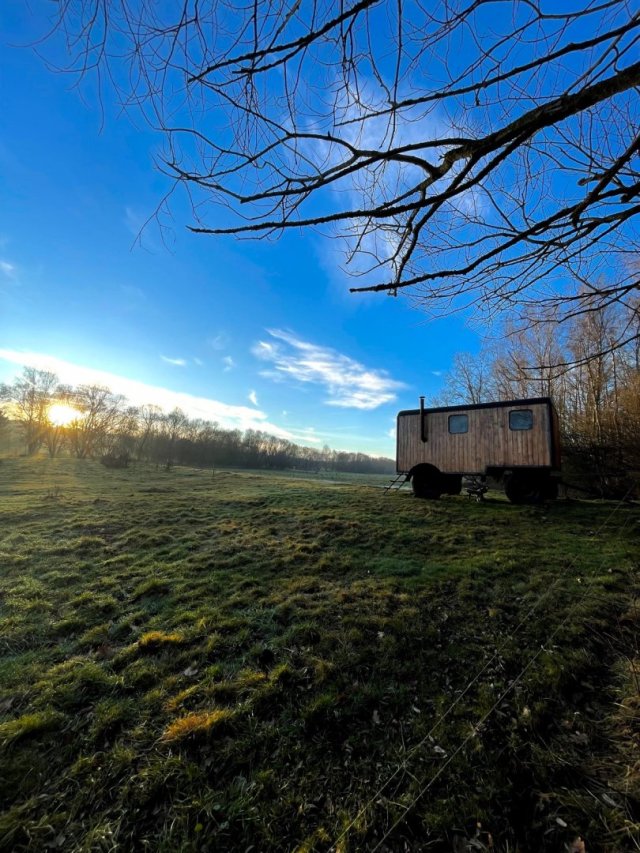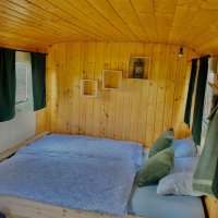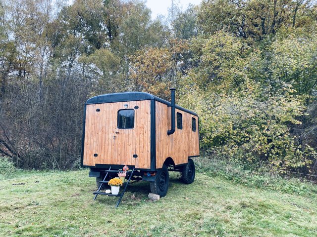 Maringotka je ideální pro dva dospělé (postel 160x200cm, ložní prádlo je k dispozici) . V maringotce je vybavená kuchyňka s plynovým vařičem(hrnec, nože, příbory, talíře, skleničky....vše, co je k přípravě jednoduchého občerstvení nezbytné), opéct buřty si můžete na venkovním ohništi. Zima Vám určitě nebude, zatopit si můžete v kamnech. Parkovat můžete cca 30 metrů od maringotky na lesní cestě. Můžete si zde naordinovat digitální detox, ale elektřina na nabíjení telefonů a notebooků je tu díky solárnímu panelu. Hygienu obstará venkovní kadibudka a v letních měsících campingová sprcha nebo se můžete vykoupat v řece Jihlávce, která protéká pozemkem.