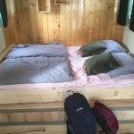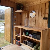 10.2 - 12.2.2023 Markéta říká: O tomto pobytu jsme uvažovali už déle, protože jsme byli zvědaví na tento typ maringotky a rekonstrukci ale cena nám přišla přemrštěná. Nakonec jsme se přeci jen rozhoupali a rozhodli se užít si trochu glampingu. Maringotka je zrekonstruovaná hezky ale nemohu ji doporučit na zimní pobyt za současných okolností. Bohužel oproti popisu nebyla maringotka vytápěná kamny na dřevo ale plynovým topidlem, které smrdí a nedá se v uzavřených malých prostorech moc použít a nelze použít během noci. Je nutné dobře větrat a vzhledem k tomu, že nejsou zprovozněná okna a střešní okna jsou zrušená úplně, je jediná možnost otevřít dveře. Tohle bude nevýhoda i v parném létě. Maringotka je umístěná na hezkém místě, na které je ale odevšad hodně vidět. Hned nad maringotkou je rušná silnice. Když to srovnám s jiným pobytem za podstatně nižší cenu, byla maringotka chabě vybavená. V kuchyni byl jeden rendlík. Hodila by se třeba pánev a konvice na čaj a nějaká vařečka a lžíce. Na úklid byl malý smetáček s lopatkou, hodil by se velký smeták a nějaký hadr a kbelík ať už na úklid nebo nádoba na mytí nádobí a ke dveřím rohožka. Takže pokud bychom s sebou měli běžné kempingové vybavení a především teplý spacák za třetinovou nebo max poloviční cenu by to bylo ok, ale takhle jsme byli docela zklamaní. Topení byl vážně průšvih, protože nocování v únoru pod tenkou dečkou, která neudrží žádné teplo bez možnosti topení je o zdraví. Zvažovali jsme na druhou noc i nákup spacáku v Jihlavě. Bylo by fajn, kdyby k maringotce bylo nějaké sezení třeba skládací židle se stolkem a venku jen pár špalků. Nic takového není venku ani vevnitř. Sedět se dá v maringotce jen na zemi. Postel má vysoký a hodně chatrný rám, takže je k sezení nevhodná. A ještě nás překvapilo, že se maringotka nedá zevnitř nijak zamknout. Skvělé je řešení s mini dřezem pokud si potřebujete třeba jen lehce opláchnout ruce. S vodou jsme ale hodně šetřili a pokud by nebyl sníh a neměli jsme vlastní balík vod určitě bychom nevyšli. Celkově to na nás působilo tak, jako by si majitele maringotku moc neprobydleli, dala by se určitě značně vylepšit pár praktickýma drobnostma. Jo a pokud přijedete v noci, tak pozor na cestu, maringotka je kolem dokola obehnána provázkem, či dvěma včetně cesty ke kadibudce.