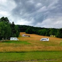 Hezke misto nad vesnici. Pozemek mirne svazity, ale jeste se auto da vyrovnat kliny. Krasny vyhled a klid od neprochazejicich a neprojizdejicich lidi. Majitel v ten den den nepritomny, ale komunikoval. Nenasli jsme nikde WC, asi bylo v chatce, kterou ale mel pronajatou nekdo jiny. Ale prekazka to neni 🙂. Nedaleky kostel zvoni co 1/4 hodiny a v celo hodinu agresivneji 😁, a umi pravidelne probouzet. Ale mozna nekomu vadit nebude 🙂. Celkovy dojem...prijel bych rad znovu ,ale vzal bych si spunty do usi 🙂
